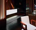 内と外の境界に木製ルーバーと植栽を配置し、視界を制御した。その境界は、街の景観と共生する。